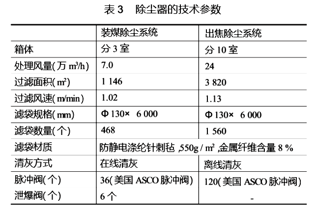 三焦車間焦爐的除塵設備系統投入運行以來裝煤、岀焦煙塵捕集率達到95%,除塵器的除塵效率達到99%,經過凈化后排放的廢氣含塵濃度均小于50mg/m(標態下),遠低于國家規定的排放標準120mg/m(標態下),實現了除塵改造的預定目標。該項目順利通過了環境保護局的驗收。